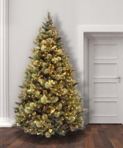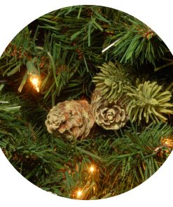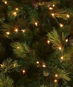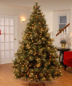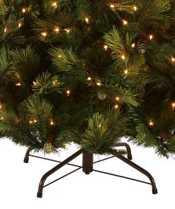 This Carolina Pine tree is a full body tree featuring mixed bristle and cashmere branch tips and is trimmed with pinecones. It is pre-strung with 750 clear lights that remain lit even if a bulb burns out. This tree features hinged branches for ease of assembly. Sturdy folding metal tree stand is included.
