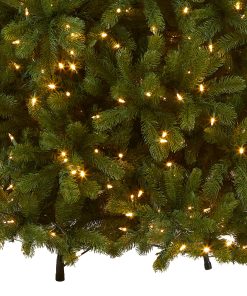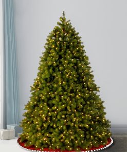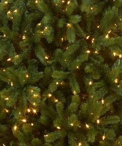 - This Downswept Douglas Fir Full Pre-Lit Artificial Green Christmas Tree is 7.5 feet tall with a 68 inch base diameter. Featuring hundreds of Feel Real individually crafted branch tips to create full bodied branches. this tree is designed to look and feel lifelike.