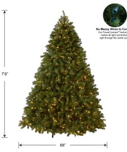This Downswept DouglasFir tree features the PowerConnect through-the-pole lighting system that eliminates the need for connecting multiple light strings. reducing set up time. Also featured is Feel Real branch tip technology. creating a tree with remarkable realism. This tree is pre-strung with 1200 Dual Colorlights that change from warm white to multicolor with the touch of a button. Included is a foot pedal switch to control 10 different light colors and actions. This tree features hinged branch construction for ease of assembly. Sturdy metal tree stand is included.
