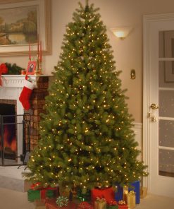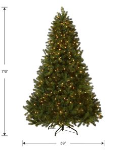 - This Downswept Douglas Fir Full Pre-Lit Artificial Green Christmas Tree is 7.5 feet tall with a 59 inch base diameter. Featuring hundreds of Feel Real individually crafted branch tips to create full bodied branches. this tree is designed to look and fee
