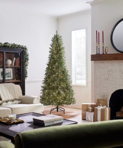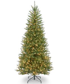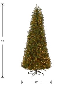 Transform your home into a winter wonderland with National Tree Company’s Pre-Lit Artificial Christmas Tree. This majestic Dunhill Fir tree is 7.5 feet tall and 43 inches in diameter at the bottom. giving the tree a wide profile. Friends and family alike will marvel at how the tree closely mimics those outside. Made to look and feel lifelike. the stunning realism of the tree is defined by its close attention to detail. featuring hundreds of individually crafted branch tips that make up the wide. full-bodied branches that create space for your lights and ornaments. The tree is designed with a hinged branch system that allows the branches to swing down for a quick and simple set-up and fold back in for easy storage. Set aside 45-60 minutes after assembly to properly shape the tree by peeling back the branches and pulling the tips apart to give the branches a more full-bodied look. This fantastically festive tree is strung with 750 white UL lights prior to packaging and includes a sturdy. metal base for a more convenient setup. The lights operate individually. so if the bulb lens has not been cracked or broken. the light set will continue to illuminate except for any individual bulbs that are not working. Before dressing the tree in twinkling lights and glistening ornaments. consider placing it in a living room or dining area where it can be viewed from multiple angles and does not block any entryways. Constructed with sturdy. high quality materials and hypo-allergenic. fire-resistant needles. this tree is built to bring holiday cheer for years to come. At National Tree Company. we strive to create high quality Christmas decorations to help you transform your home so you can keep making every holiday moment magical.