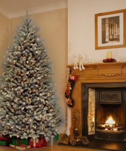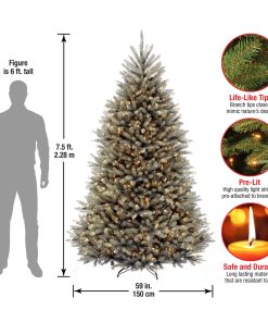 - This Dunhill Fir Full Pre-Lit Artificial Blue Christmas Tree is 7.5 feet tall with a 59 inch base diameter. Featuring hundreds of individually crafted branch tips to create full bodied branches. this tree is designed to look and feel lifelike.