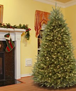 - This Dunhill Fir Full Artificial Green Christmas Tree is 7.5 feet tall with a 59 inch base diameter. Featuring hundreds of individually crafted branch tips to create full bodied branches. this tree is designed to look and feel lifelike.