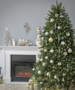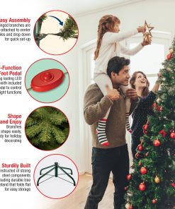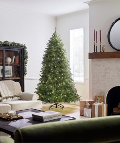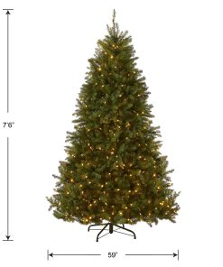 This Dunhill Fir tree is pre-strung with 700 Dual Color(R) lights that change from warm white to multicolor with the touch of a button. Included is a foot pedal switch to control 10 different light colors and actions. This tree features hinged branch construction for ease of assembly. Sturdy metal tree stand is included.
