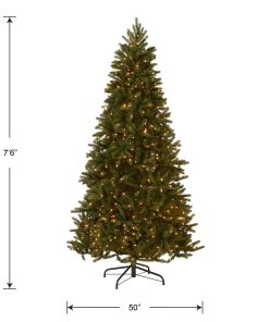 - This Grande Fir Pre-Lit Artificial Green Christmas Tree is 7.5 feet tall with a 50 inch base diameter. Featuring hundreds of Feel Real individually crafted branch tips to create full bodied branches. this tree is designed to look and feel lifelike.