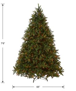 - This Jersey Fraser Fir Medium Pre-Lit Artificial Green Christmas Tree is 7.5 feet tall with a 65 inch base diameter. Featuring hundreds of Feel Real individually crafted branch tips to create full bodied branches. this tree is designed to look and feel