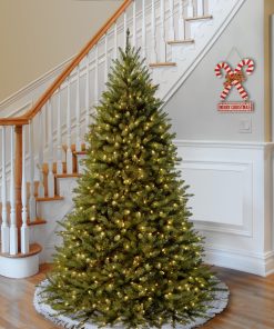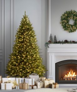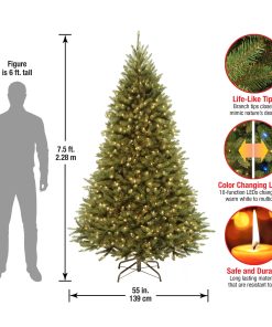 - This Kingswood Fir Medium Pre-Lit Artificial Green Christmas Tree is 7.5 feet tall with a 55 inch base diameter. Featuring hundreds of individually crafted branch tips to create full bodied branches. this tree is designed to look and feel lifelike.