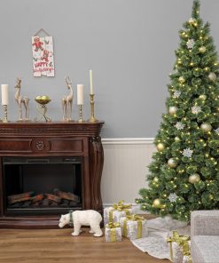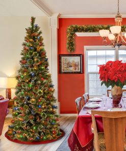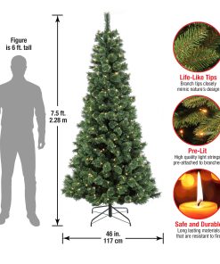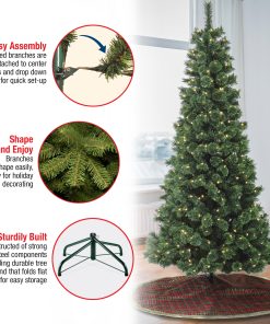 The Pilchuck Pine is a mixed branch tree featuring soft bristle tips. The slim profile makes it a great choice for display in corners or areas with limited floor space. It is pre-strung with 450 warm white LED lights that are long lasting and energy efficient. This three-section tree is designed with hinged branches for ease of assembly. Sturdy folding metal tree stand is included.