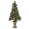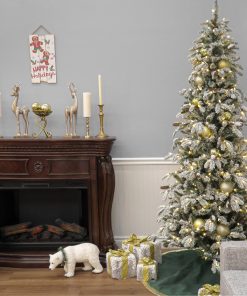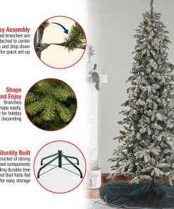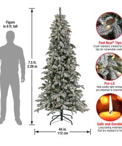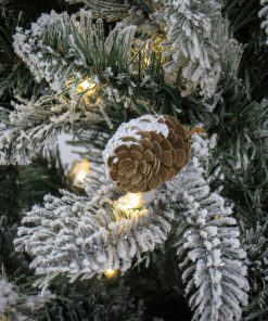 The Snowy Vintin Fir tree features Feel Real branch tip technology. creating a tree with remarkable realism. These crush-resistant branch tips are molded from real tree branches for an authentic living tree appearance. This tree is trimmed with pinecones and dusted with the look of freshly fallen snow. It is pre-lit with 400 warm white LED lights that are long lasting and energy efficient. This three-section tree is designed with hinged branches for ease of assembly. Sturdy folding metal tree stand is included. For indoor display.
