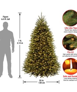 - This Dunhill Fir Full Pre-Lit Artificial Green Christmas Tree is 7 feet tall with a 55 inch base diameter. Featuring hundreds of individually crafted branch tips to create full bodied branches. this tree is designed to look and feel lifelike.