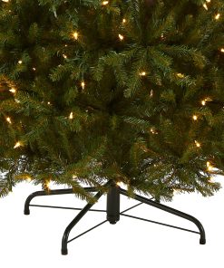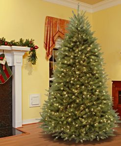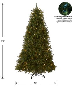 This Dunhill Fir tree features the PowerConnect through-the-pole lighting system that eliminates the need for connecting multiple light strings. It is pre-strung with 650 Dual Colorlights that change from warm white to multicolor with the touch of a button. Included is a foot pedal switch to control 10 different light colors and actions. This tree features hinged branch construction for ease of assembly. Sturdy metal tree stand is included.