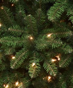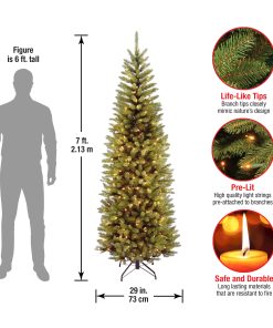 - This Kingswood Fir Slim Pre-Lit Artificial Green Christmas Tree is 7 feet tall with a 29 inch base diameter. Featuring hundreds of individually crafted branch tips to create full bodied branches. this tree is designed to look and feel lifelike.