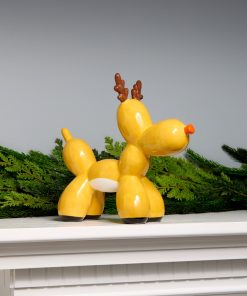 Add this adorable balloon dog figurine to your Christmas collection. Standing 8 inches tall. this festive design features a reindeer inspired balloon dog with brown detailing. red nose. and antlers. Place this joyful piece on a tabletop or mantle. For indoor use only.