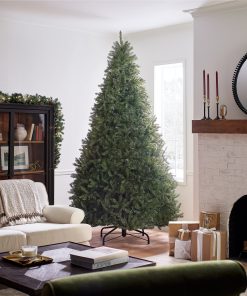 If you need to fill a room with a commanding holiday centerpiece. this 9 ft. tall Dunhill Fir fits the bill. This full body tree features a generous number of branch tips for holding holiday trimmings. This tree features hinged branch construction for ease of assembly. Sturdy metal tree stand is included.