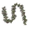 This General Store Snowy Garland holiday garland features snow-sprinkled evergreen branches flowing along a flexible vine base. trimmed with glittered pinecones. red berries and plaid fabric bows. It is pre-lit with 75 battery operated warm white LED lights that are energy efficient and long lasting. Included is an option for 6 hours ON/18 hours OFF timed operation. Also included is a convenient handheld remote to control the lights. This igarland can be displayed over doors. windows. fireplace mantels. fence. or stairway railings. For indoor or outdoor display.