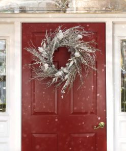 24 in. Pre-Lit Alpine Snow Lump Wreath with Pure White LED Rice Lights