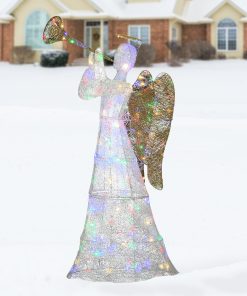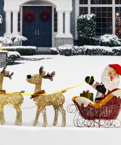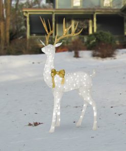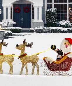 42 in. Glittered Mesh Fabric Deer with 27 in. Sleigh and Lights