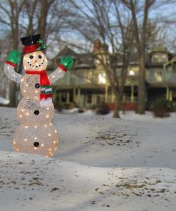 48 in. Pre Lit Iridescent Snowman Decoration. Cool White LED Lights
