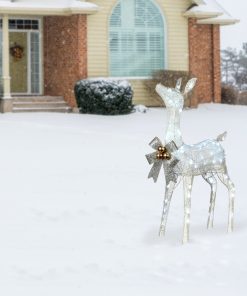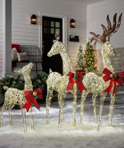 60 in.. 52 in. and 36 in. Champagne Glitter Deer Family with 370 Warm White LED Lights