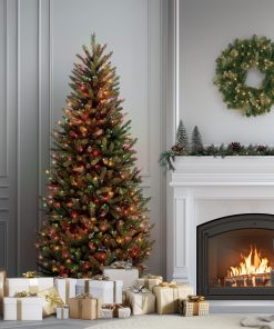 6.5 ft. Pre-Lit Natural Fraser Fir Slim Tree with Multicolor Lights