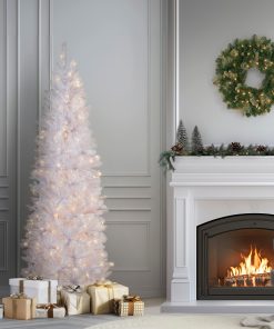 6.5 ft. Pre-Lit Kingswood Fir White Pencil Tree with Clear Lights
