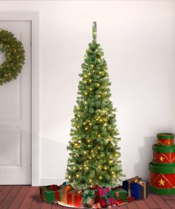 6 ft. Pre-Lit Linden Spruce Slim Tree with Warm White LED Lights