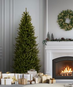 7.5 ft. Pre-Lit Acacia Pencil Slim Flocked Tree with Clear Lights