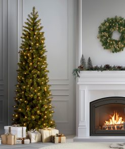 7.5 ft. Pre-Lit Downswept Douglas Fir Pencil Slim Tree with Dual Color LED Lights