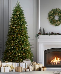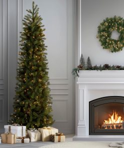 9 ft. Pre-Lit Tiffany Fir Slim Tree with Clear Lights – PVC Branch Tips