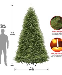 - This Dunhill Fir Full Artificial Green Christmas Tree is 10 feet tall with a 70 inch base diameter. Featuring hundreds of individually crafted branch tips to create full bodied branches. this tree is designed to look and feel lifelike.