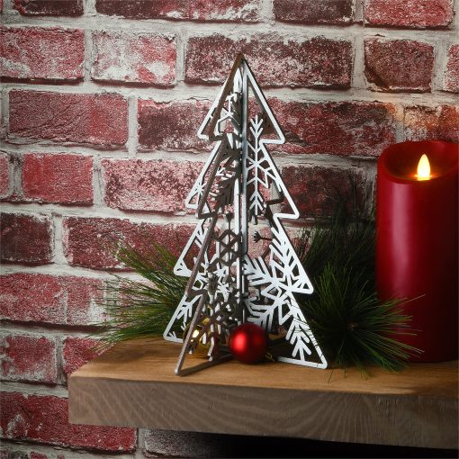 10 in. and 7 in. Silver Christmas Trees Table Decor. Lightweight Wood. Set of 2