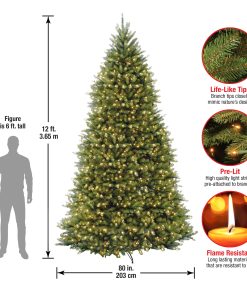 - This Dunhill Fir Full Pre-Lit Artificial Green Christmas Tree is 12 feet tall with a 80 inch base diameter. Featuring hundreds of individually crafted branch tips to create full bodied branches. this tree is designed to look and feel lifelike.