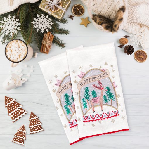 18 in. HGTV Home Collection Christmas Snow Globe Guest Towel Pair