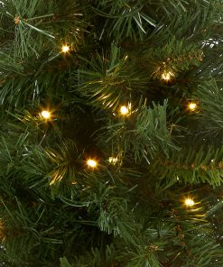 - Features 35 warm white battery operated LED lights that remain lit even when a bulb goes out. The lights are strung on the tree before packaging. offering an easier. more convenient set up. Two AA batteries required.