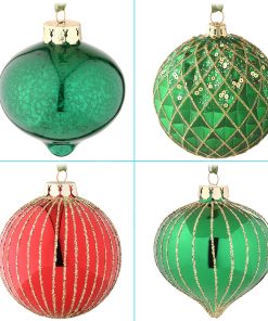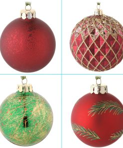 This set of 20 vintage-style blown glass ornaments feature a motif of bright and green Christmas colors in both gloss and matte finishes. Included are ball. teardrop. and ornate shapes many with hand-painted and glittered designs offering a relaxed country flavor. Each ornament includes a ribbon loop for hanging convenience. Boxed in white heavyweight cardboard with cushioned compartments. these beautiful ornaments will become a part of your holiday decorating for years to come.
