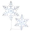These stunning 24 inch and 20 inch ice crystal hanging snowflakes are perfect for adding a magical touch to your holiday décor! Connected together and illuminated by 200 cool white LED lights. they create a dazzling display that mimics the beauty of falling snow. Ideal for hanging indoors or outdoors. these snowflakes will transform your space into a winter wonderland. enchanting all who see them!