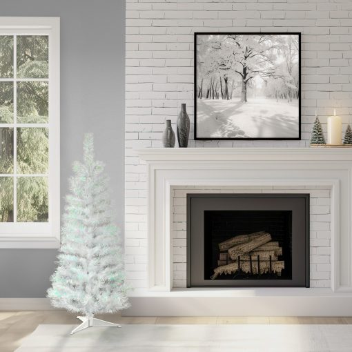 There is no mistaking that the holiday season has arrived when you see glittering tinsel decorations. This small and compact white iridescent tinsel tree with matching stand is perfect for tabletop display. Just attach the tree stand legs and you are ready to add some sparkle to your holiday decorating.