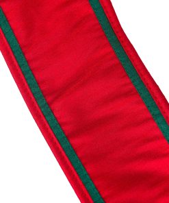 This HGTV Home Collection by National Tree Company 3 inch dupioni double-sided red ribbon with green piping is perfect for a variety of crafts. holiday decorations. and gift wrapping. The dupioni texture gives it a luxurious look. while the double-sided feature means it looks great from any angle. Made of 100% polyester.