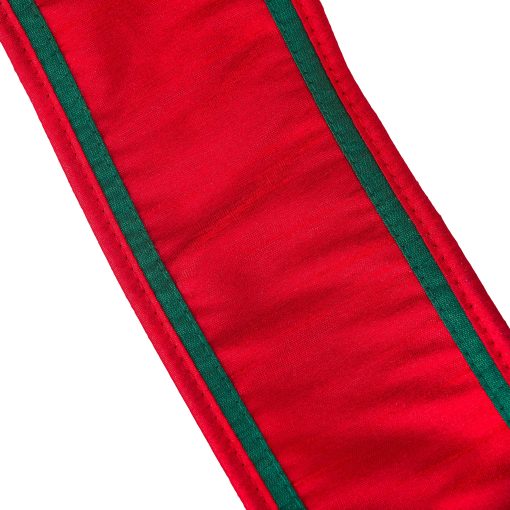 This HGTV Home Collection by National Tree Company 3 inch dupioni double-sided red ribbon with green piping is perfect for a variety of crafts. holiday decorations. and gift wrapping. The dupioni texture gives it a luxurious look. while the double-sided feature means it looks great from any angle. Made of 100% polyester.