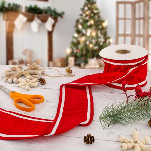 3 in. HGTV Home Collection Dupioni Double-Sided Ribbon. Red & White