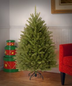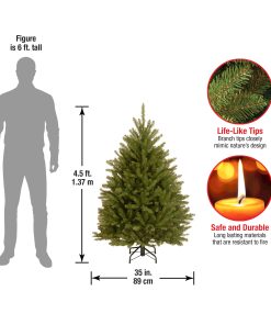 - This Dunhill Fir Mini Artificial Green Christmas Tree is 4.5 feet tall with a 35 inch base diameter. Featuring hundreds of individually crafted branch tips to create full bodied branches. this tree is designed to look and feel lifelike.