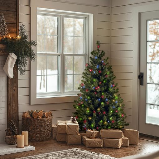 - Features 200 multicolor lights that remain lit even when a bulb goes out. The lights are strung on the tree before packaging. offering an easier. more convenient set up.