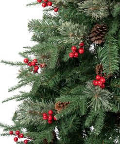 The Virginia Pine tree features Feel Real branch tip technology. creating a tree with remarkable realism. These crush-resistant branch tips are molded from real tree branches for an authentic living tree appearance. Branches are a mixture of evergreen and bristle tips that are trimmed with red berries and pinecones. Crafted with high quality materials and hinged branches for easy set up and includes a sturdy metal folding stand. For indoor display only.