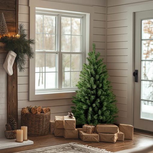 - This North Valley Spruce Slim Artificial Green Christmas Tree is 4 feet tall with a 31 inch base diameter. Featuring hundreds of individually crafted branch tips to create full bodied branches. this tree is designed to look and feel lifelike.