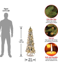 - This Snowy Downswept Pre-Lit Artificial Green Christmas Tree is 4 feet tall with a 16 inch base diameter. Featuring hundreds of individually crafted branch tips to create full bodied branches. this tree is designed to look and feel lifelike.