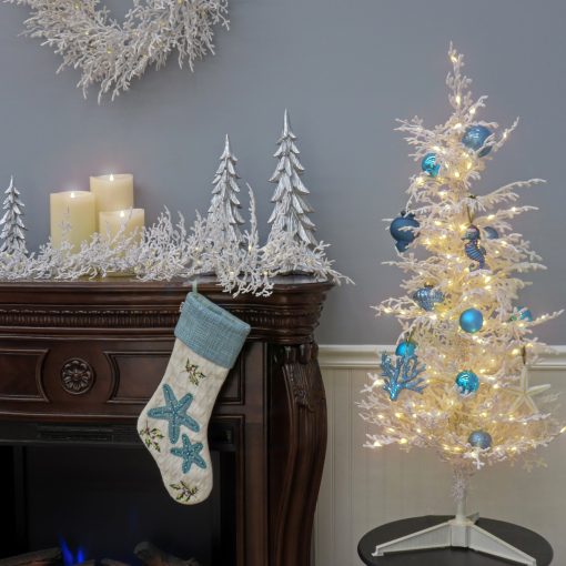 The HGTV Home Collection by National Tree Company unique Sea Coral Tree is bright white and features snow-flocked branches that give the appearance of soft coral tips. It includes a plastic matching color tree stand and is pre-lit with 100 warm white LED lights that are energy-efficient and long lasting. Crafted with high quality materials and hinged branches for an easy set up. Fo indoor display only.