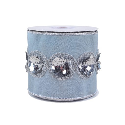4 in. HGTV Home Collection Sequin Beaded Taffeta Ribbon. Blue