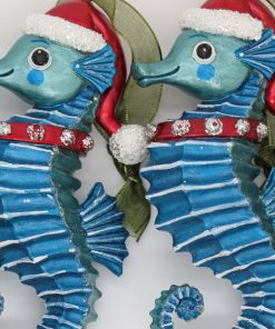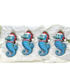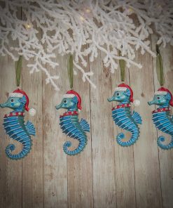 The HGTV Home Collection by National Tree Company 4 piece glass teal seahorse ornaments are a delightful choice for adding a unique and playful touch to your holiday decor! Their vibrant teal color will bring a refreshing pop to your decorations. making them perfect for a coastal or beach-themed Christmas.