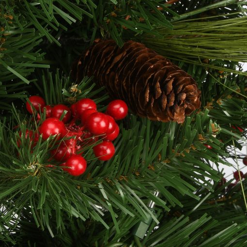 This entrance tree is part of the Decorative Collection line of holiday decorating ideas. Seated in a bronze decorative base. this tree features bristle branches. and red berry clusters. It is pre-lit with 35 clear lights that remain lit even if a bulb burns out. Display this attractive greenery in any indoor or covered outdoor location.