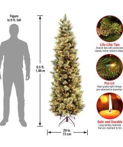 This Carolina Pine tree offers a slim profile tree that is great for display in corners. small rooms and areas with limited space. It features mixed bristle and cashmere branch tips for an overall softer appearance. It is trimmed with pinecones for added natural appeal and is pre-strung with 350 clear lights that remain lit even if a bulb burns out. This tree features hinged branch construction for ease of assembly. Sturdy folding metal tree stand is included.